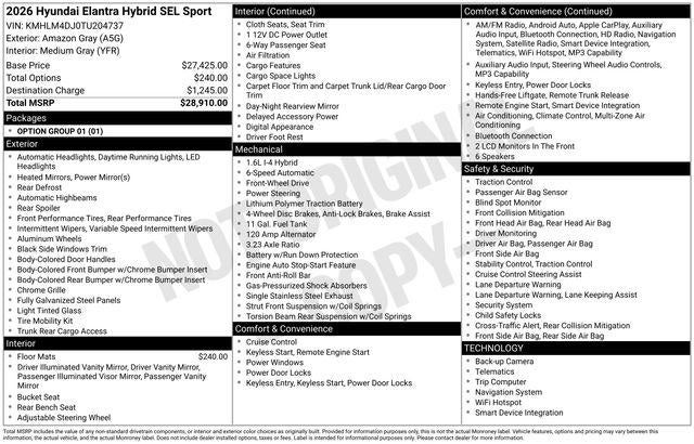 2026 Hyundai Elantra Hybrid SEL Sport