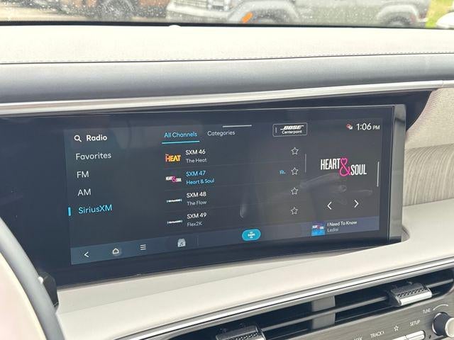 • Radio: Infotainment Navigation System -inc: Bose 14-speaker premium audio system w/Centerpoint and SoundTrue enhanced technology, 12.3" color touchscreen, wireless Apple CarPlay and Android Auto, HD Radio, Sirius XM, Passenger Talk 2.0 in-car intercom system, dynamic voice recognition, rear seat quiet mode, Bluetooth® hands-free w/wireless audio streaming, multiple device connection (up to 2 devices), USB connectivity, Bluelink + connected car services, Wi-Fi hotspot, steering wheel audio controls and Over-the-Air (OTA) software updates