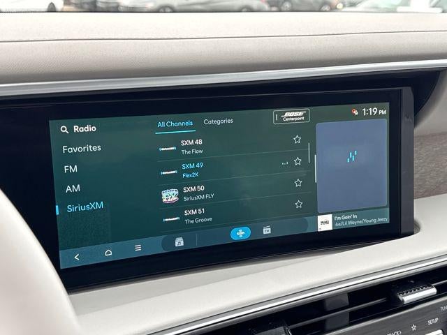 • Radio: Infotainment Navigation System -inc: Bose 14-speaker premium audio system w/Centerpoint and SoundTrue enhanced technology, 12.3" color touchscreen, wireless Apple CarPlay and Android Auto, HD Radio, Sirius XM, Passenger Talk 2.0 in-car intercom system, dynamic voice recognition, rear seat quiet mode, Bluetooth® hands-free w/wireless audio streaming, multiple device connection (up to 2 devices), USB connectivity, Bluelink + connected car services, Wi-Fi hotspot, steering wheel audio controls and Over-the-Air (OTA) software updates