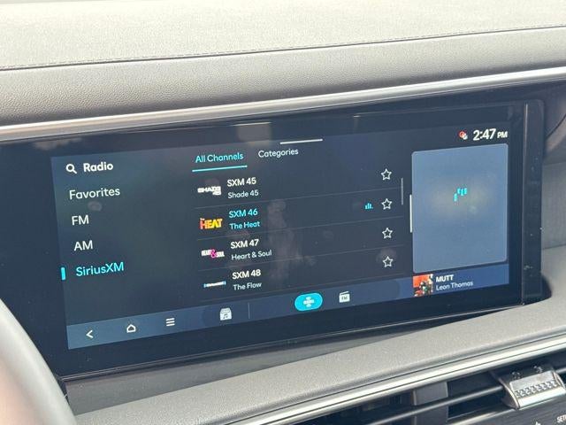 - Radio: Infotainment Navigation System -inc: 12.3" color touchscreen, wireless Apple CarPlay and Android Auto, HD Radio, Sirius XM, Passenger Talk 2.0 in-car intercom system, dynamic voice recognition, rear seat quiet mode, Bluetooth® hands-free w/wireless audio streaming, multiple device connection (up to 2 devices), USB connectivity, Bluelink + connected car services, Wi-Fi hotspot, steering wheel audio controls and Over-the-Air (OTA) software updates