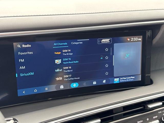 - Radio: Infotainment Navigation System -inc: Bose 14-speaker premium audio system w/Centerpoint and SoundTrue enhanced technology, 12.3" color touchscreen, wireless Apple CarPlay and Android Auto, HD Radio, Sirius XM, Passenger Talk 2.0 in-car intercom system, dynamic voice recognition, rear seat quiet mode, Bluetooth® hands-free w/wireless audio streaming, multiple device connection (up to 2 devices), USB connectivity, Bluelink + connected car services, Wi-Fi hotspot, steering wheel audio controls and Over-the-Air (OTA) software updates