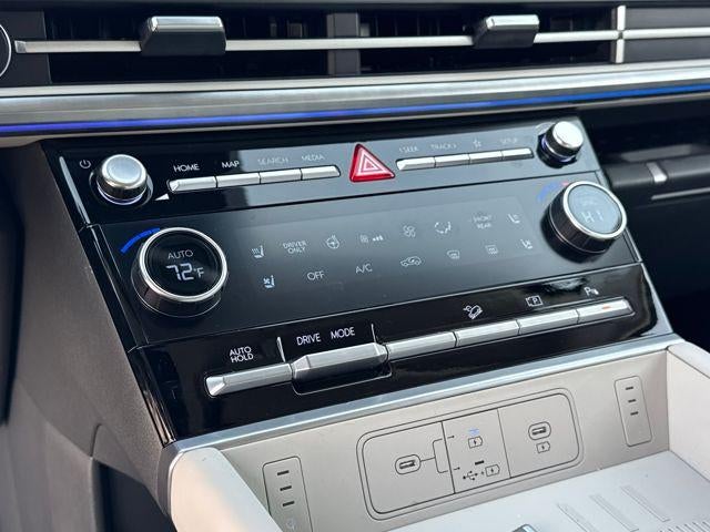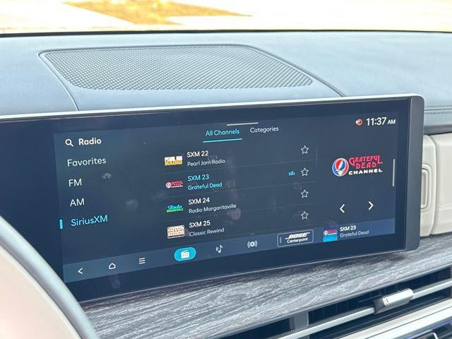 - Radio: AM/FM/HD Bose Premium Audio System -inc: 12 speakers including subwoofer, external amplifier, 12.3" wide touchscreen, wireless Apple CarPlay and Android Auto, Bluetooth® hands-free w/wireless audio streaming, dynamic voice recognition, USB connectivity, SiriusXM, wifi hotspot, Blue Link connected car system, navigation system including traffic flow w/incident data via HD Radio (HERE), OTA updates and rear seat quiet mode