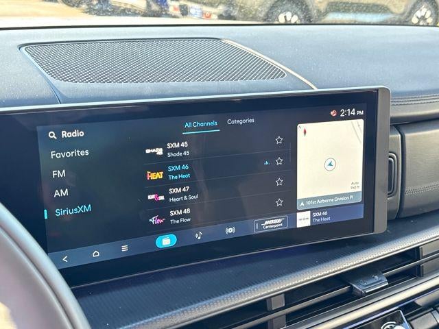 • Radio: AM/FM/HD Bose Premium Audio System -inc: 12 speakers including subwoofer, external amplifier, 12.3" wide touchscreen, Apple CarPlay and Android Auto, Bluetooth® hands-free w/wireless audio streaming, dynamic voice recognition, USB connectivity, SiriusXM, Blue Link+ connected car system, over-the-air updating capability, navigation system including traffic flow w/incident data via HD Radio (HERE) and rear seat quiet mode
