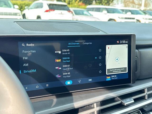 - Radio: AM/FM/HD Display Audio -inc: 6 speakers, 12.3" wide touchscreen display, Apple CarPlay, Android Auto, Bluetooth® hands-free w/wireless audio streaming, dynamic voice recognition, USB connectivity, SiriusXM, Blue Link+ connected car system, over-the-air updating capability, navigation system including traffic flow w/incident data via HD Radio (HERE) and rear seat quiet mode