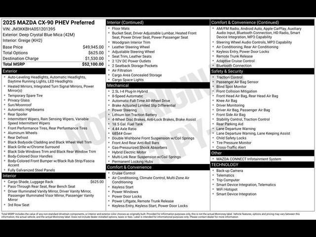 - Vehicle Name: Mazda CX-90 PHEV