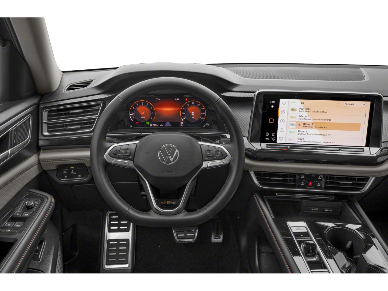 - Radio: MIB3 Composition Media -inc: 12" touchscreen multi-function center display, AM/FM/HD Radio and WMA/MP3/FLAC player w/USB-C input, voice control, SiriusXM w/360L (w/3-month free trial subscription; 360L services require acceptance of SiriusXM terms), 6-speaker sound system, Bluetooth® connectivity (for compatible devices), capability for in-vehicle 4G LTE enabled Wi-Fi (cellular data plan required; includes limited trial), capability for VW Car-Net services (capabilities for services vary; requires enrollment or subscription), App-Connect smartphone integration (w/Apple CarPlay, Android Auto and MirrorLink) via USB, wireless App-Connect smartphone integration (for compatible devices) w/multi-phone pairing capability and Qi wireless inductive charger up to 15W (for compatible mobile phones and accessories) in front row All VW Car-Net services subject to terms and limitations. Some services, which include emergency assistance services, require a paid subscription. See dealer or vw.com/carnet for details.